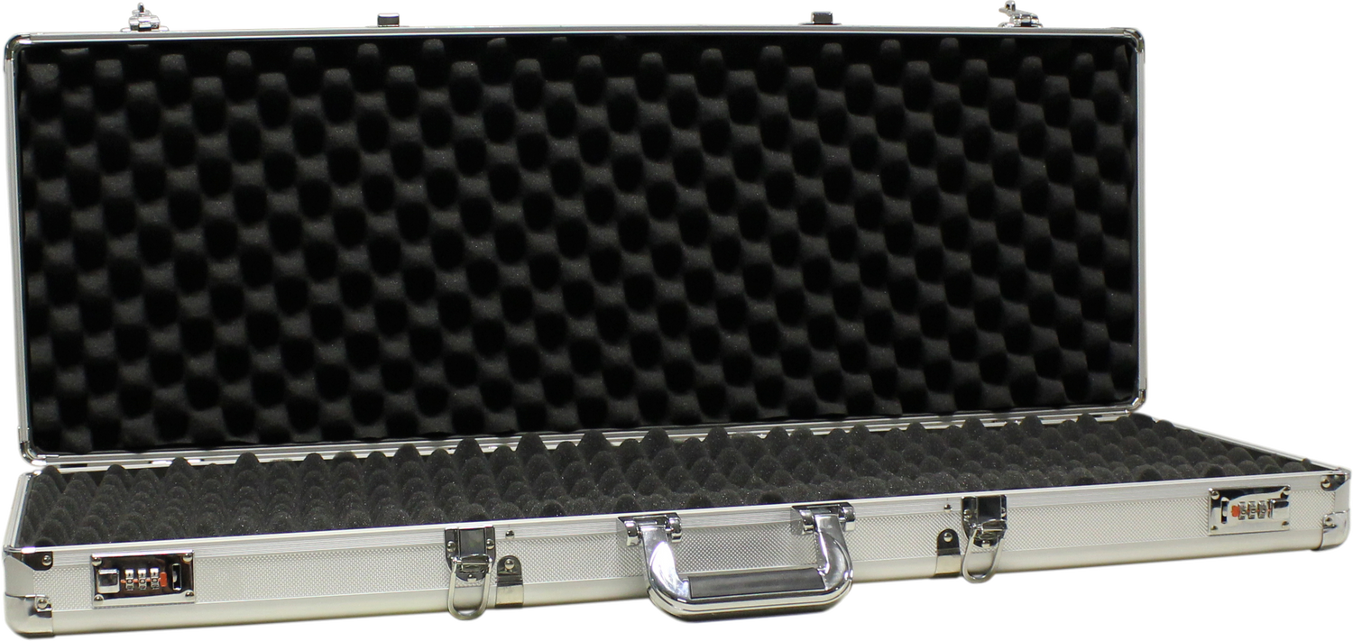 Heavy-duty alloy construction with reinforced corners and edges gives rock-solid defence against bumps and knocks during transport. The interior features high-density egg-crate foam in lid and base to cradle your firearm and absorb shock.