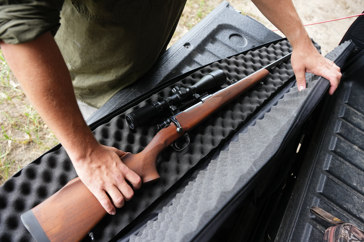 • Side storage pocket for bolts, magazines & accessories