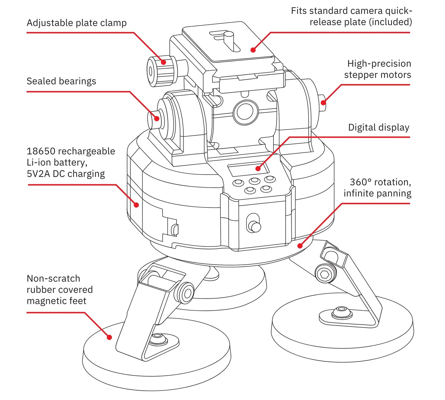 Three powerful magnetic feet with non-slip rubber coverings lock securely to your vehicle roof, bonnet or tray, keeping your tripod firmly in place on rough tracks or at speed.